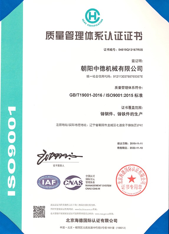 朝陽中德機(jī)械有限公司座落于有著“東方佛都”之稱的三燕古都,歷史文化名城——朝陽,具體位置朝陽市龍城區(qū)七道泉子鎮(zhèn)鐵匠爐村。公司創(chuàng)建于2006年5月是一家以鑄鋼件、鑄鐵件,集按用途設(shè)計、開發(fā)、生產(chǎn)、銷售于一體的,為機(jī)械設(shè)備配套的生產(chǎn)型公司。公司注冊資金1000萬,固定資產(chǎn)投資1480萬元,主要生產(chǎn)設(shè)備GGW-5T,GGW-10T,GGW-10T中頻感應(yīng)爐;GDY-13C高溫電阻窯、GDY-9.5C電阻窯,M4000型直讀光譜儀,DP-3985型硬度測試儀,倒置式金相顯微鏡、拉伸試驗機(jī)、超生波探傷儀,檢測手段完備。